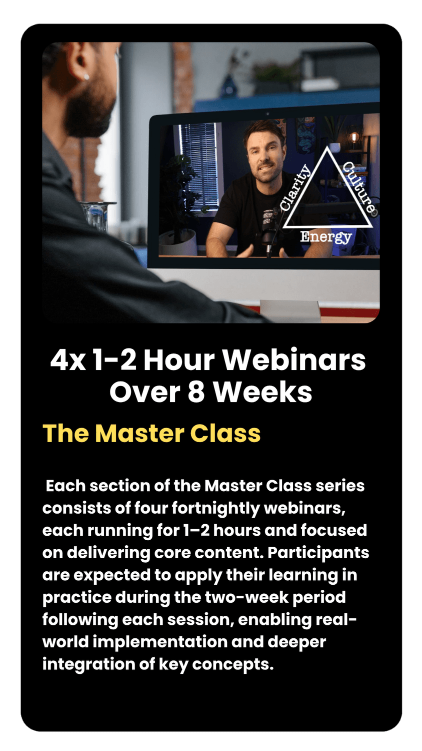 Our Master Class and Mentorship aims to teach, then mentor & coach you through the process of developing a strategy that will change the way you do business, and not only save you thousands in the process, but improve your overall workplace culture.