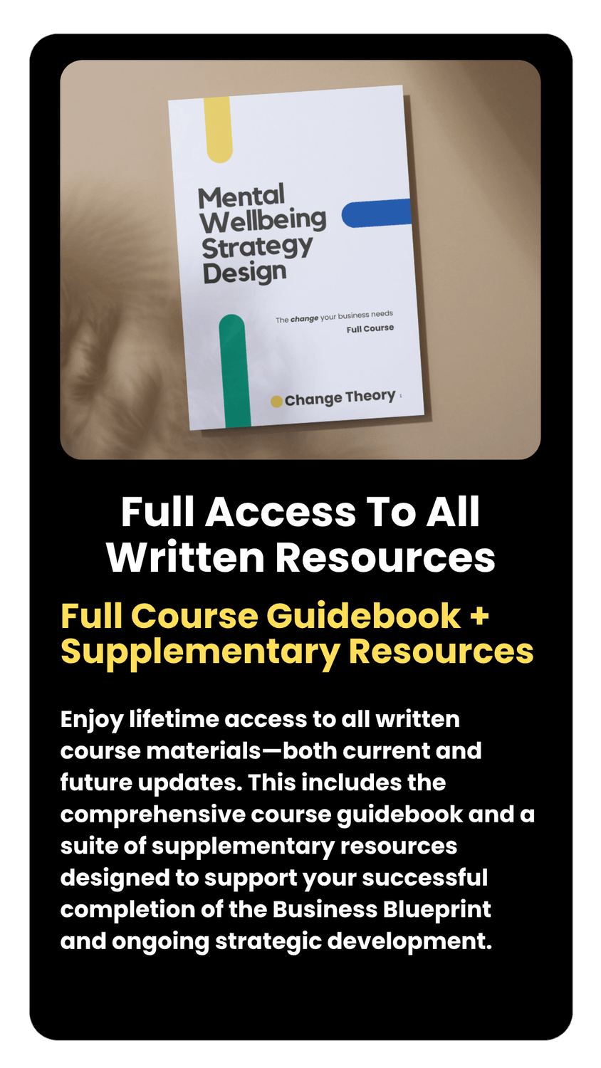 The Business Blueprint is a comprehensive program engineered to equip participants with all necessary tools for developing advanced wellbeing strategies, regardless of prior experience.
